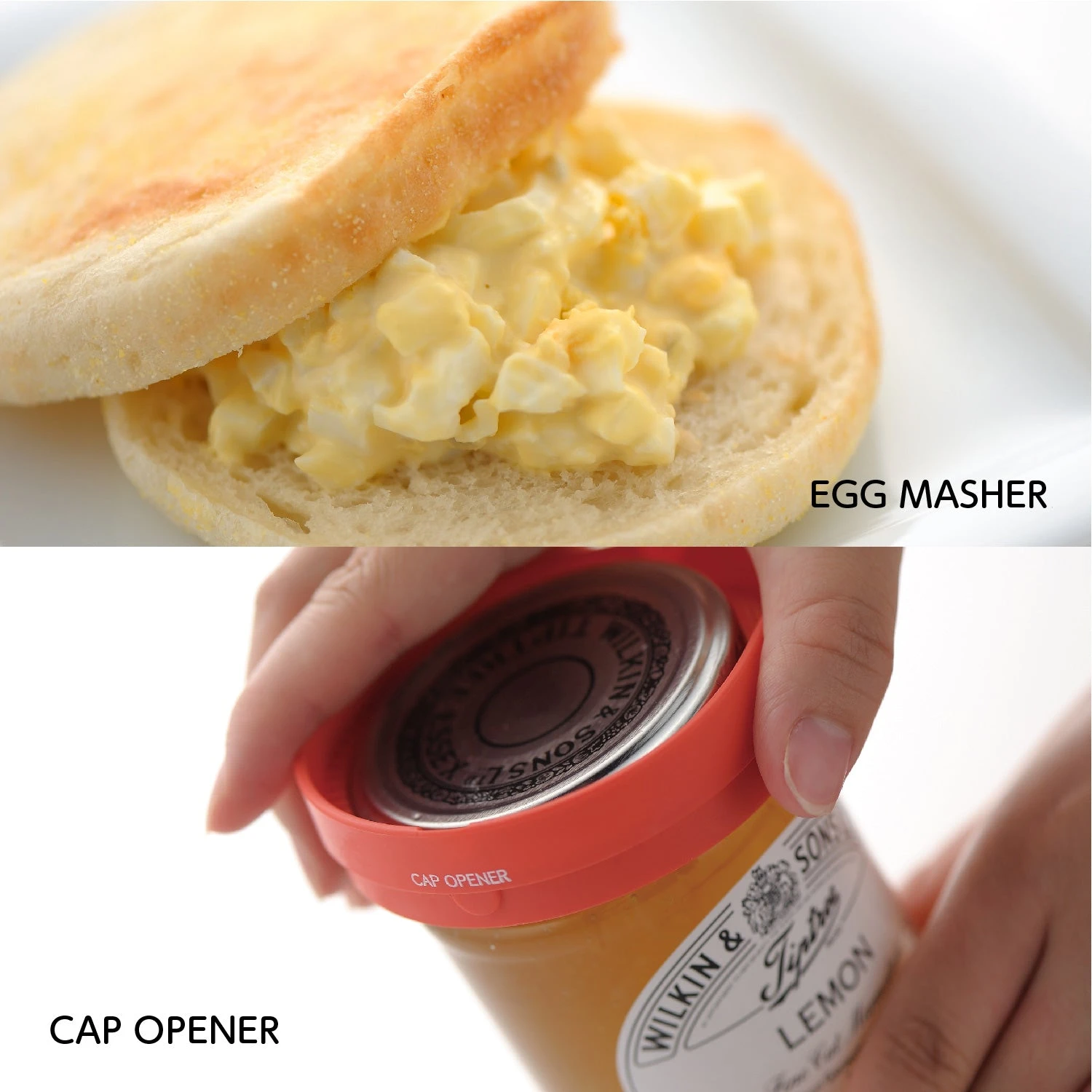 - Material:Funnel Attachment/Cap Opener: Thermoplastic elastomer (heat resistant from -30℃ to 70℃), Funnel/Lemon Squeezer/Measuring Cup: AS resin (heat resistant from -30℃ to 80℃) , Grater/Cheese Grater/Yolk Remover: ABS resin (heat resistant from -30℃ to 80℃), Egg Crusher: Polypropylene (heat resistant from -20℃ to 120℃)